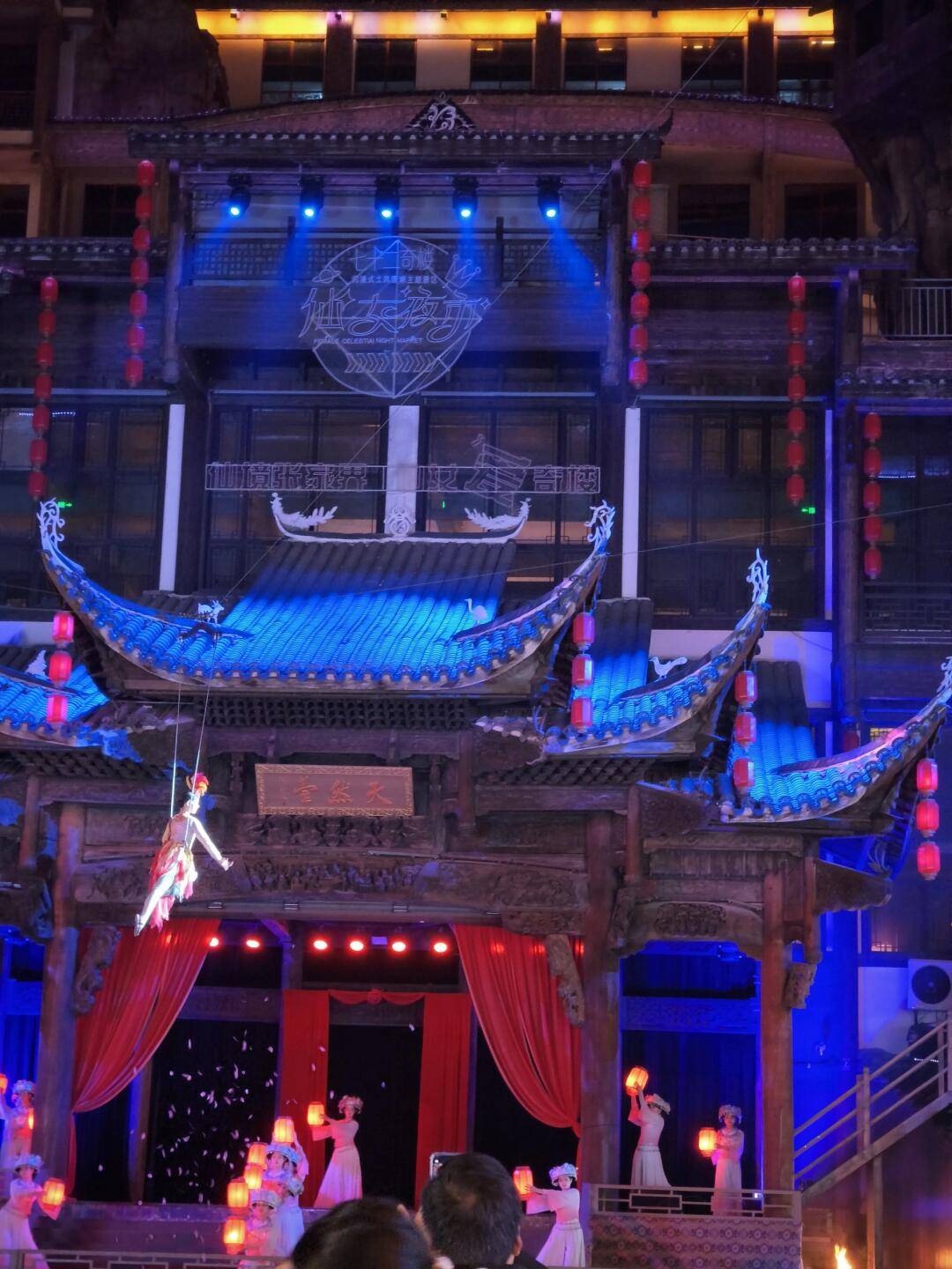 :乘坐天门山索道上山,这是世界上最长的高山客运索道,全长7455米,高差1279米。在索道上可以欣赏到张家界市区的全貌和壮丽的山水风光。