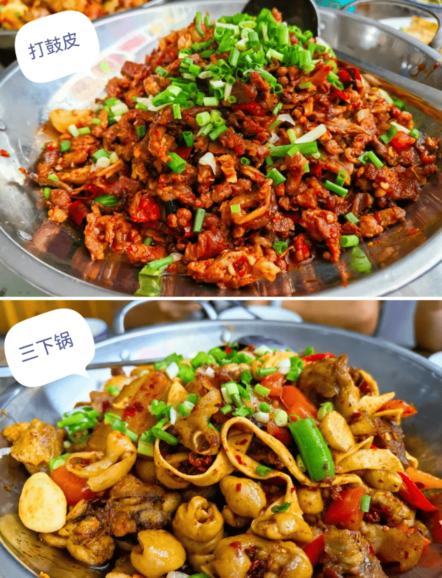 三下锅:当地招牌菜,可选择荤素搭配,推荐腊肉、猪肚、土豆、萝卜一锅炖,微微辣适合孩子。