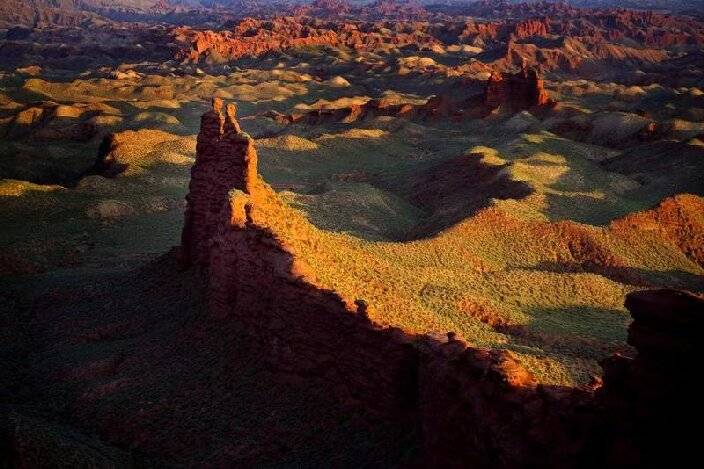 张掖平山湖大峡谷景区位于张掖市区东北方向的平山湖蒙古族乡,距市区约56公里。景区所在地平山湖蒙古族乡隔走廊平原与祁连山相望,是走廊平原与内蒙古高原的过渡地带。这里地形地貌丰富多样,有雪山冰川、林海草地、湖泊湿地、沙漠戈壁等自然景观,既有南国风韵,又有塞上风情。景区内的地貌奇观令人叹为观止,100平方公里的赤色峡谷中,丹霞、雅丹与峡谷地貌相互交融,九龙汇海鳄鱼捕食熊吻蜥蜴霸王别姬等象形地貌各具妙趣,一线天更是流水千万年下切的杰作。其地质演化历史悠久,谷底至山顶的寒武纪至新生代地层,如同一部两亿年的地球教科书,记录着这片土地的沧桑变迁。荒野生灵也为景区增添了生机与活力,东南部的森林中生长着多种植物,峡谷深处的百年胡杨是蒙古族牧民与藏胞祭拜的精神图腾,岩羊、甘肃马鹿、暗腹雪鸡等国家二级保护动物在这里生活,80余种鸟类在空中翱翔。