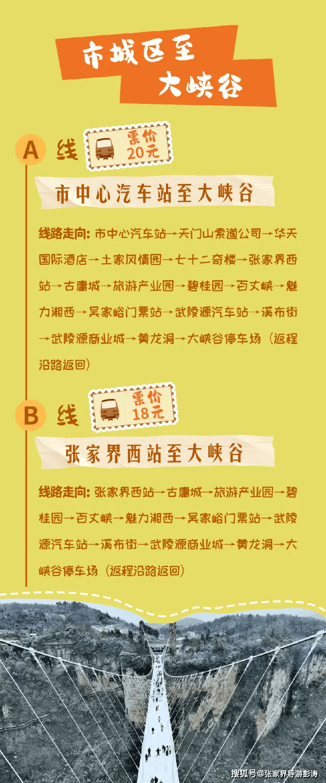 首批线路覆盖武陵源、森林公园、大峡谷等5条热门景区,具体线路及信息如下: