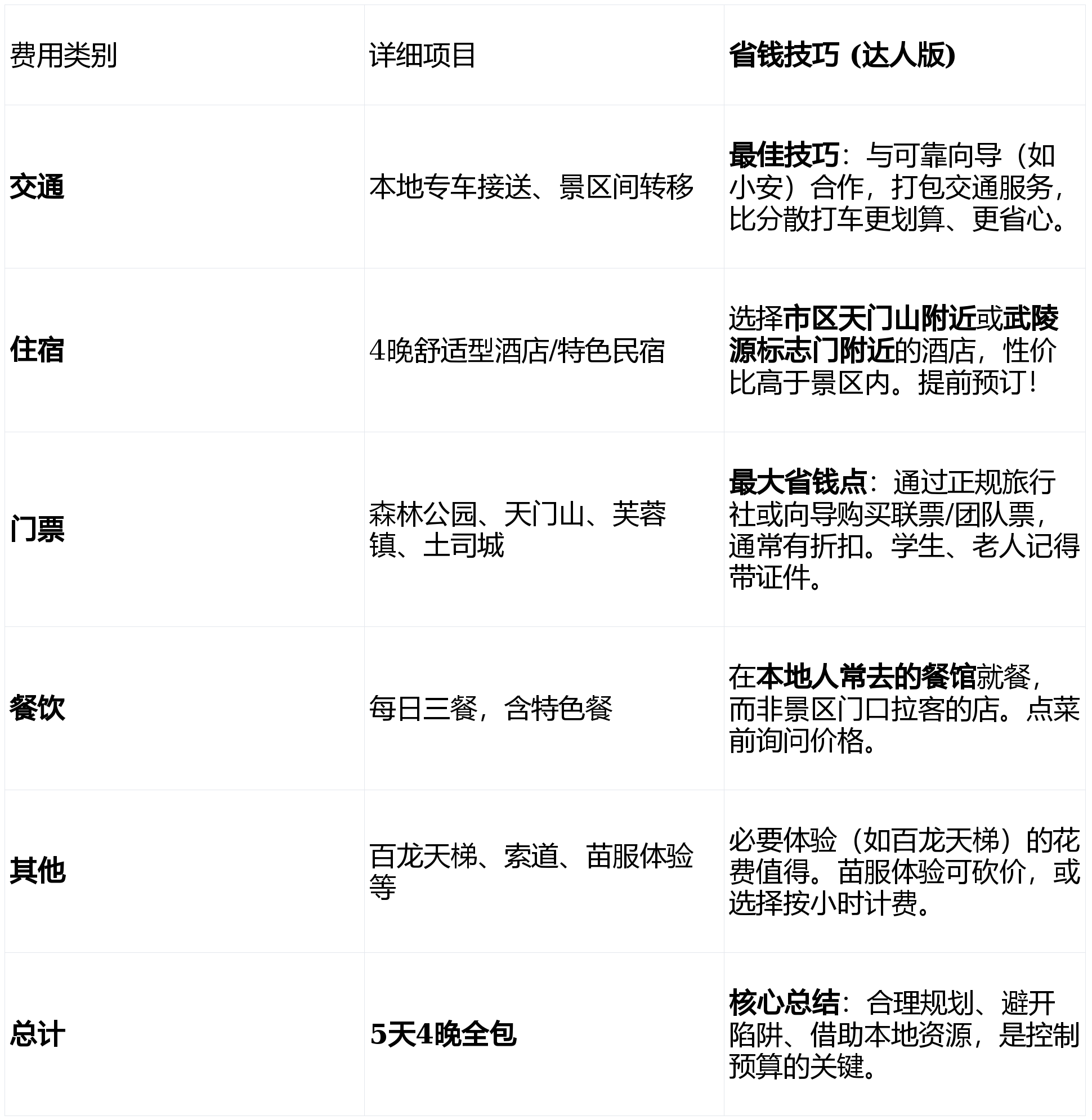 遵循此攻略,你不仅能高效玩转张家界核心景观,还能将人均花费控制在合理范围。若想彻底解放双手,追求更高性价比的省心之旅,不妨直接咨询张家界品质游导游小安 。他能根据你的具体人数、天数和预算,定制一份更精准、透明的专属方案,让你把钱都花在刀刃上,收获一次物超所值的完美旅程。返回搜狐,查看更多