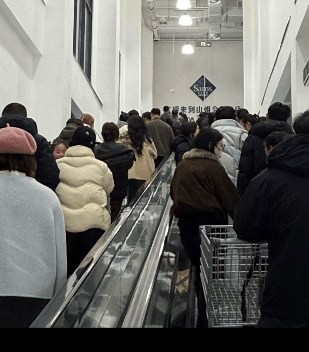 在成都,山姆、盒马等大型商超里,同样人气火爆,排队一小时以上已成常态。人们推着满载的购物车,大包小包提着年货,腊肉香肠、坚果糕点、特色零食塞满行囊。
