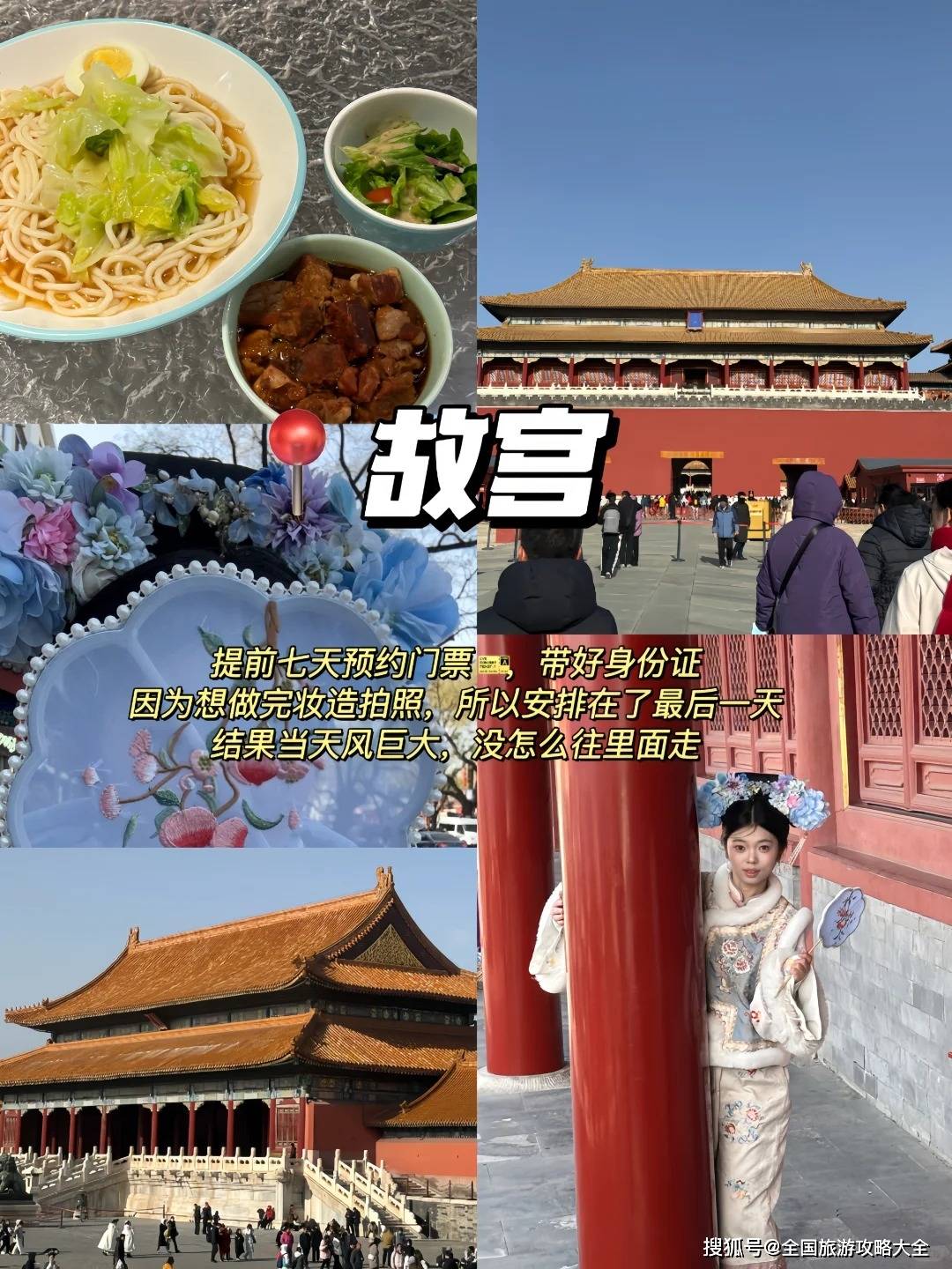 下午:广场(感受世界最大城市广场的庄严)-故宫博物院(重点!一定要找讲解,否则就是看房子。旅晨这类旅行社的导游,能讲出很多门道,比如太和殿屋脊上有多少只小兽,分别代表什么)。