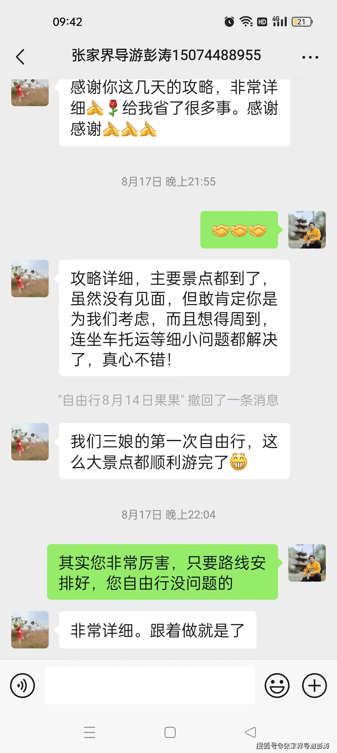 我的主要服务内容之一,是根据客人情况和需要定制行程。每个人的旅行需求和偏好都不同,有人喜欢自然风光,有人钟情历史文化,有人追求刺激冒险。我会深入了解客人的兴趣爱好、时间安排、预算等因素,为他们量身定制专属的行程。立足体验,让客人游玩舒适、轻松而深入。不再是被固定的行程牵着走,而是真正按照自己的节奏和喜好去感受张家界的魅力。